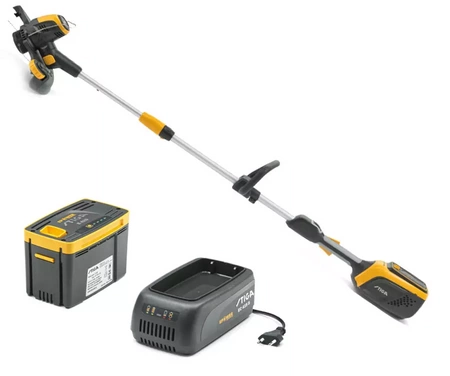 Podkaszarka akumulatorowa STIGA GT 500e jest wystarczająco mocna, elastyczna i doskonale nadaje się do koszenia, jak również do efektywnego podkaszania krawędzi trawnika. Zasilana akumulatorem 48 V, 2 Ah podkaszarka GT 500e zapewnia do 20 minut koszenia na jednym ładowaniu. Jednym szybkim obrotem można w łatwy sposób zmienić tryb przycinania na podkaszanie krawędzi. Aby uzyskać idealnie przycięte pionowo krawędzie trawnika, wystarczy obrócić głowicę tnącą o 90° i cieszyć się uzyskanymi efektami. Wysokowydajna funkcja automatycznego podawania podwójnej nylonowej żyłki zapewnia nieprzerywane i bezwysiłkowe przycinanie. Możesz również ustawić przedni uchwyt oraz teleskopowy drążek w taki sposób, aby uzyskać jak najbardziej wygodną pozycję roboczą. Rozpoczęcie pracy jest łatwe - wystarczy nacisnąć przycisk włączania/wyłączania na uchwycie kierownicy i gotowe. Następnie, gdy wszystko jest uporządkowane, można złożyć drążek na dwie części, aby ułatwić przechowywanie i oszczędzić miejsce. Akumulator 2.0 Ah i ładowarka w zestawie.